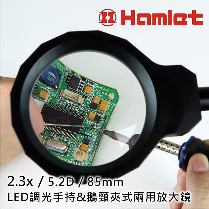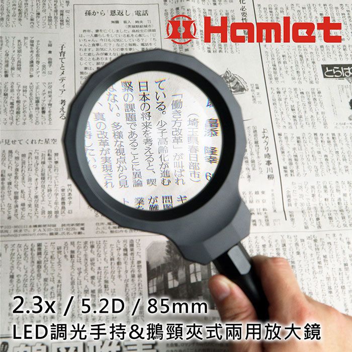 2.3x / 5.2D / 85mm LED調光手持鵝頸夾式兩用放大鏡【N272】
