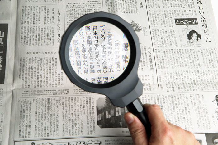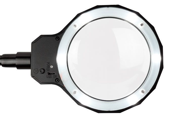 3. 在昏暗環境時,可按下放大鏡頭部內側的電源鍵,即可開啟 LED 照明,依序為強、中、弱光、關閉。
