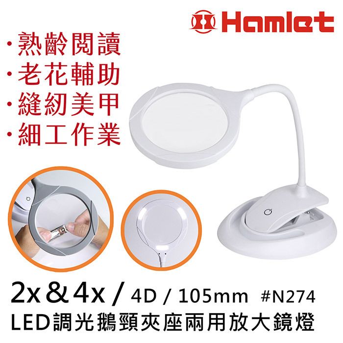 2x&4x / 4D / 105mm LED調光鵝頸夾座兩用放大鏡燈 N274