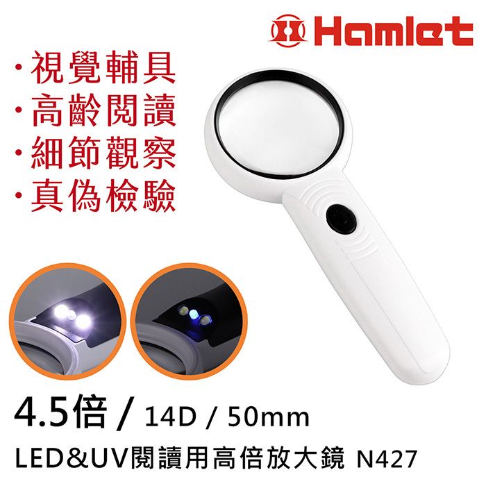4.5x / 14D / 50mm LED&UV 閱讀用高倍放大鏡 N427