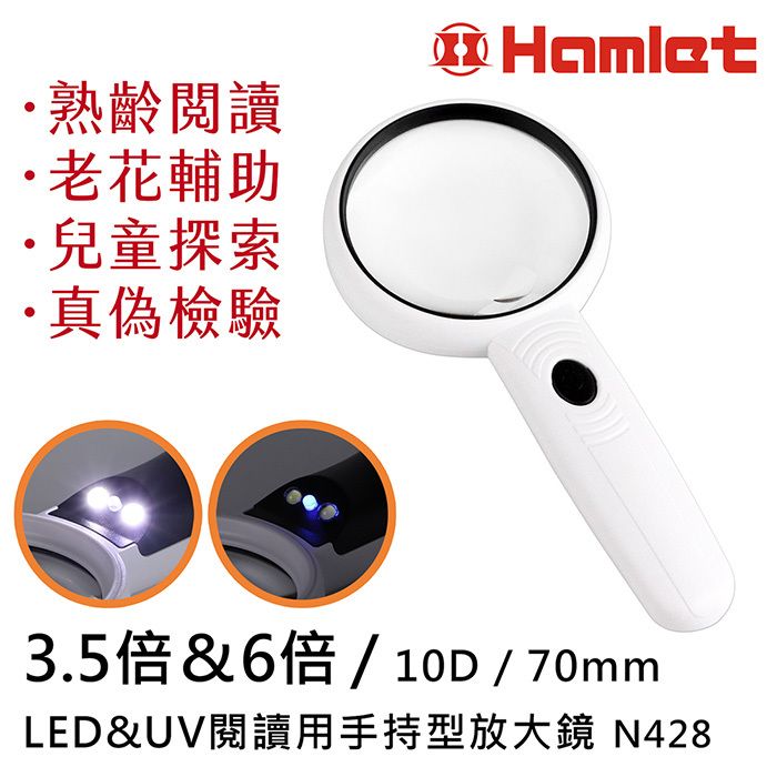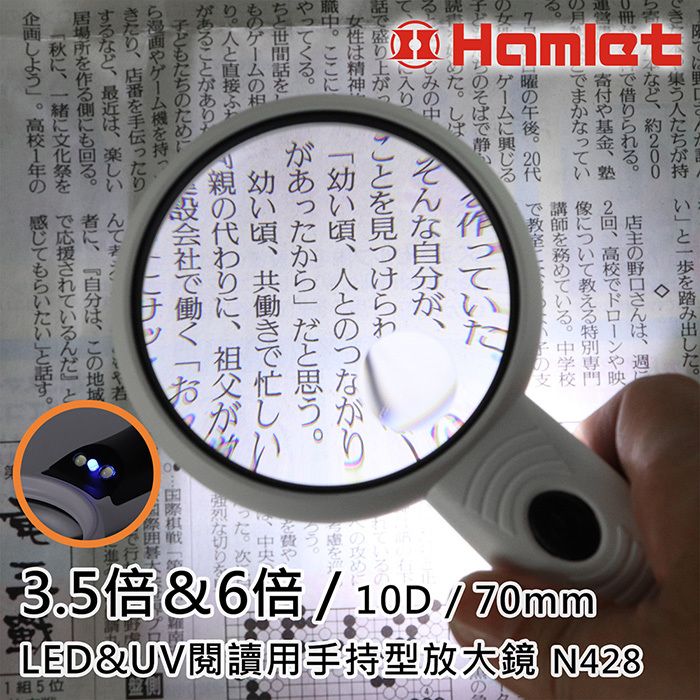 3.5x&6x / 10D / 70mm LED&UV 閱讀用手持型放大鏡 N428