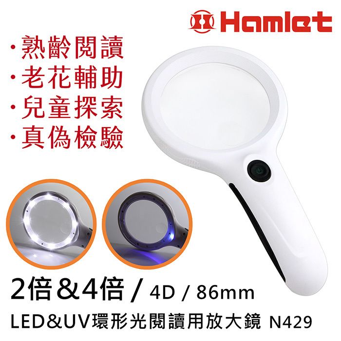 2x&4x / 4D / 86mm LED&UV 環形光閱讀用放大鏡 N429
